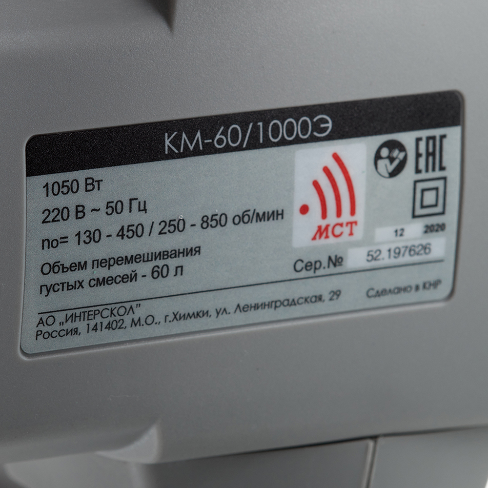 Дрель-миксер электрическая Интерскол КМ-60/1000Э (52.1.2.00) 1050 Вт
