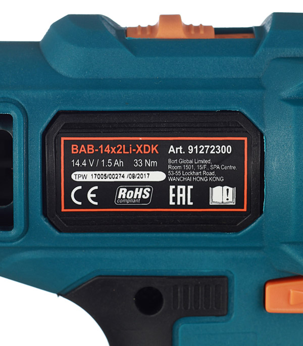 Дрель-шуруповерт аккумуляторная Bort BAB (91272300) 14,4В 2х1,5Ач Li-Ion