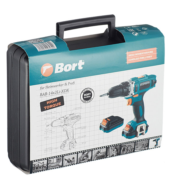 Аккумуляторная дрель-шуруповерт Bort BAB-14x2Li-XDK входит в EXTREME-серию, что подразумевает особые характеристики, надежную конструкцию и проработанную эргономику.