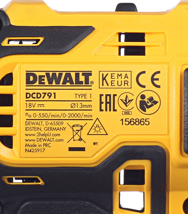 Дрель-шуруповерт аккумуляторная DeWalt DCD791D2 18В 2х2Ач Li-Ion