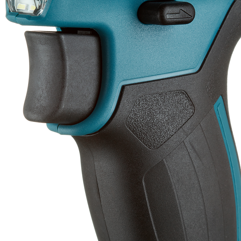 Основные кнопки управления – пуск/регулировка числа оборотов и реверсивный переключатель – вынесены на верх эргономичной обрезиненной рукоятки.
