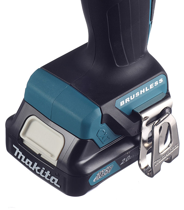 Практичная металическая клипса, закрепленная на корпусе инструмента, позволяет навешивать его на ремень в перерывах работы с ним.