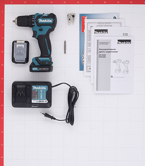 кейс, аккумулятор 10.8 В 2.0 Ач - 2 шт; зарядное устройство, бита №2 (+/-).