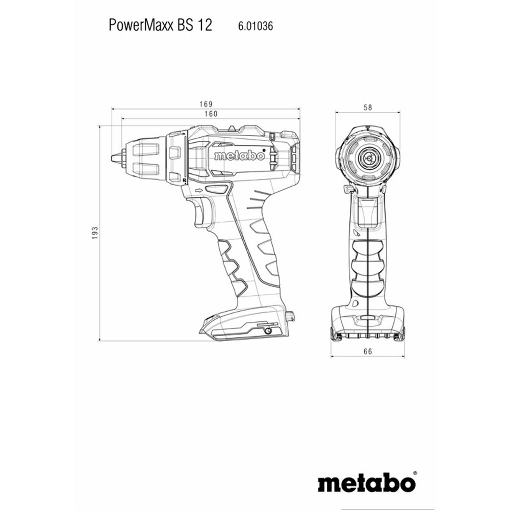 Дрель-шуруповерт аккумуляторная Metabo PowerMaxx BS 12 (601036500) 12В 2х2Ач Li-Ion