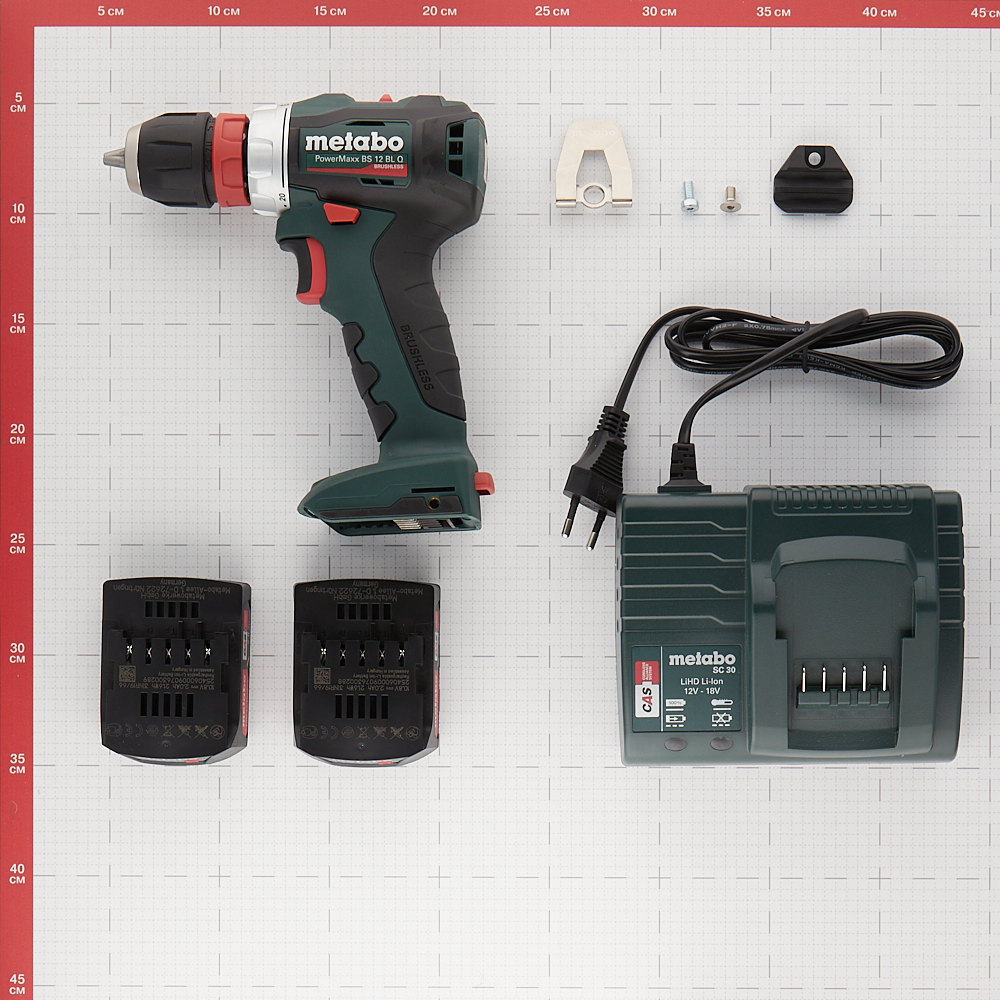 крючок для ношения на ремне и отделение для насадок, 2 аккумуляторных блока Li-Power (12 В / 2,0 А·ч), зарядное устройство SC 30, пластиковый кофр.
