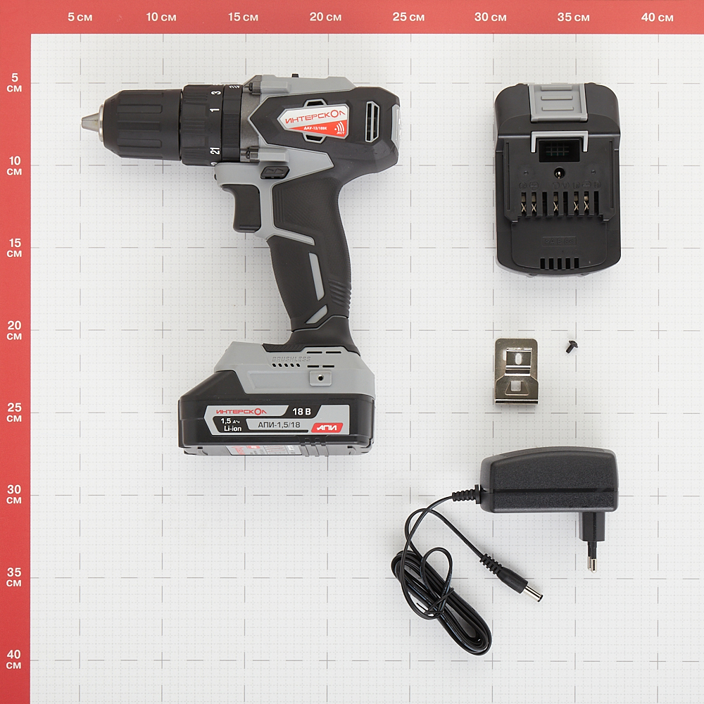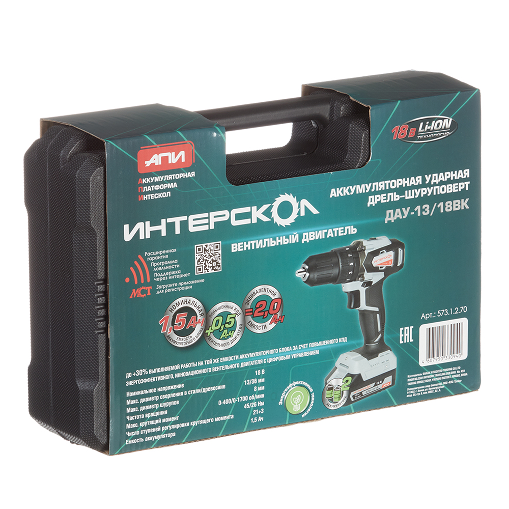 Дрель-шуруповерт аккумуляторная ударная Интерскол ДАУ-13/18ВК (573.1.2.70) 18В 2х1,5Ач Li-Ion 2 АКБ иЗУ
