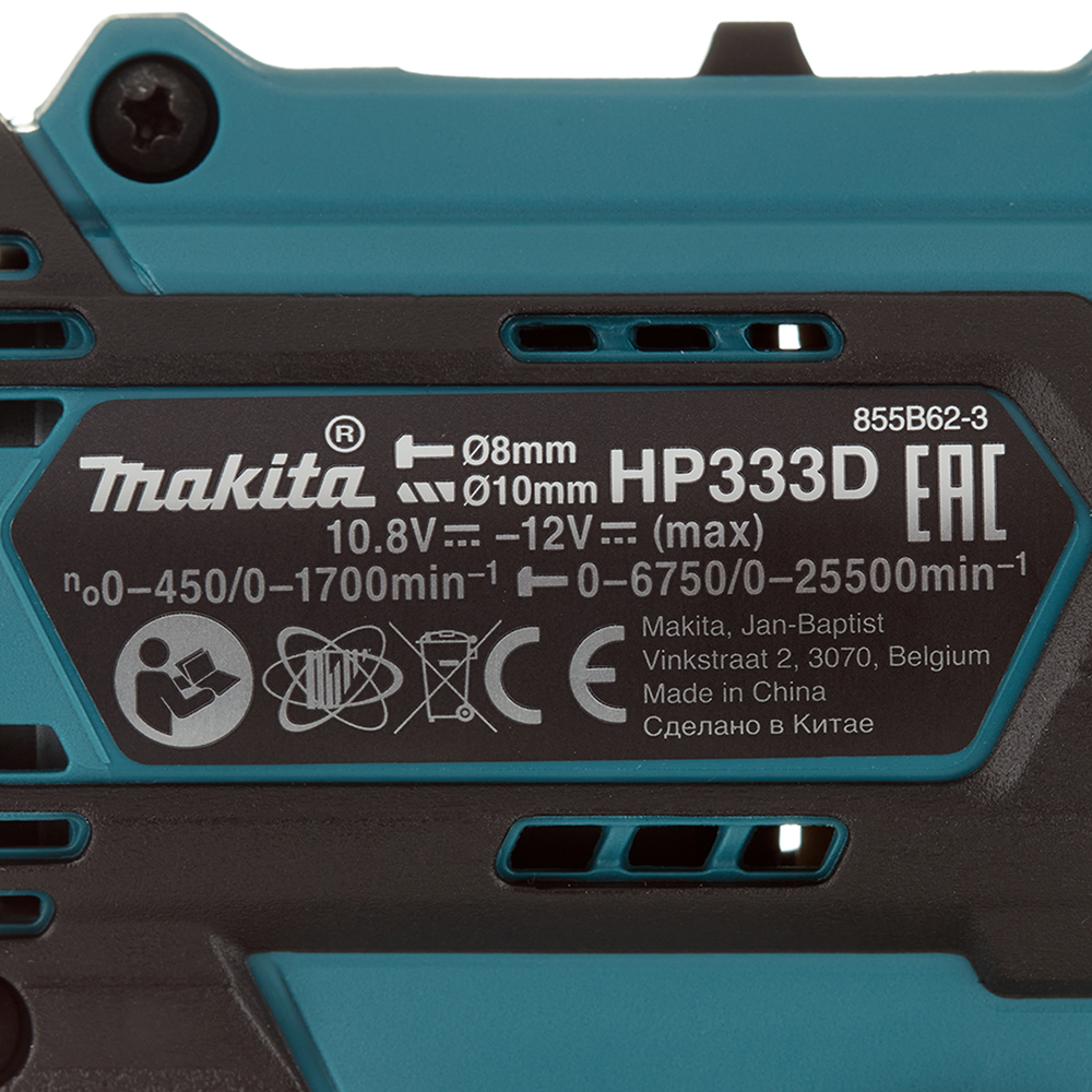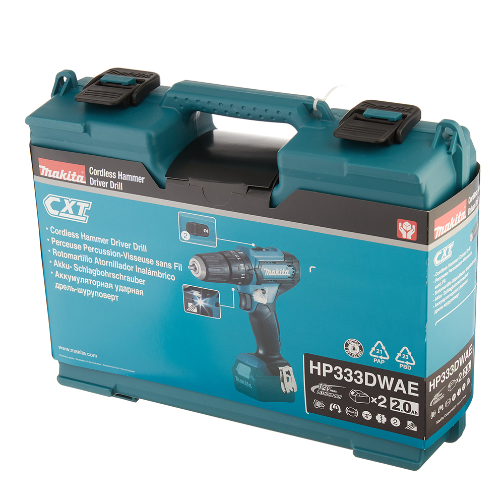 Дрель-шуруповерт аккумуляторная ударная Makita HP333DWAE 12В 2х2Ач Li-Ion