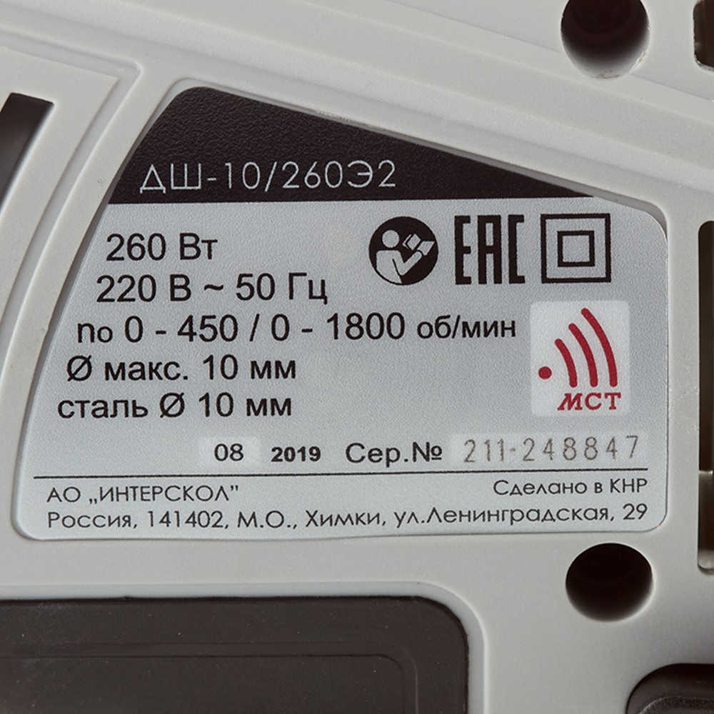 Дрель-шуруповерт безударная Интерскол ДШ-10/260Э2 (211.1.1.00) 260 Вт