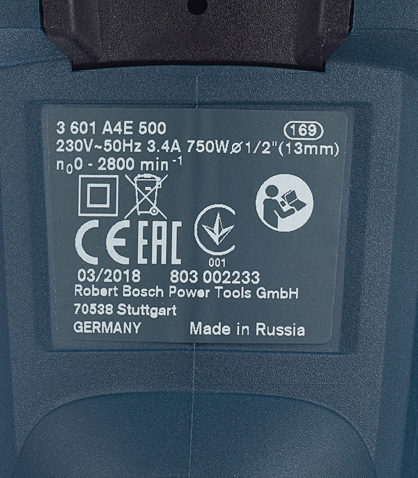 кейс, дополнительная рукоятка, ограничитель глубины сверления 210 мм.