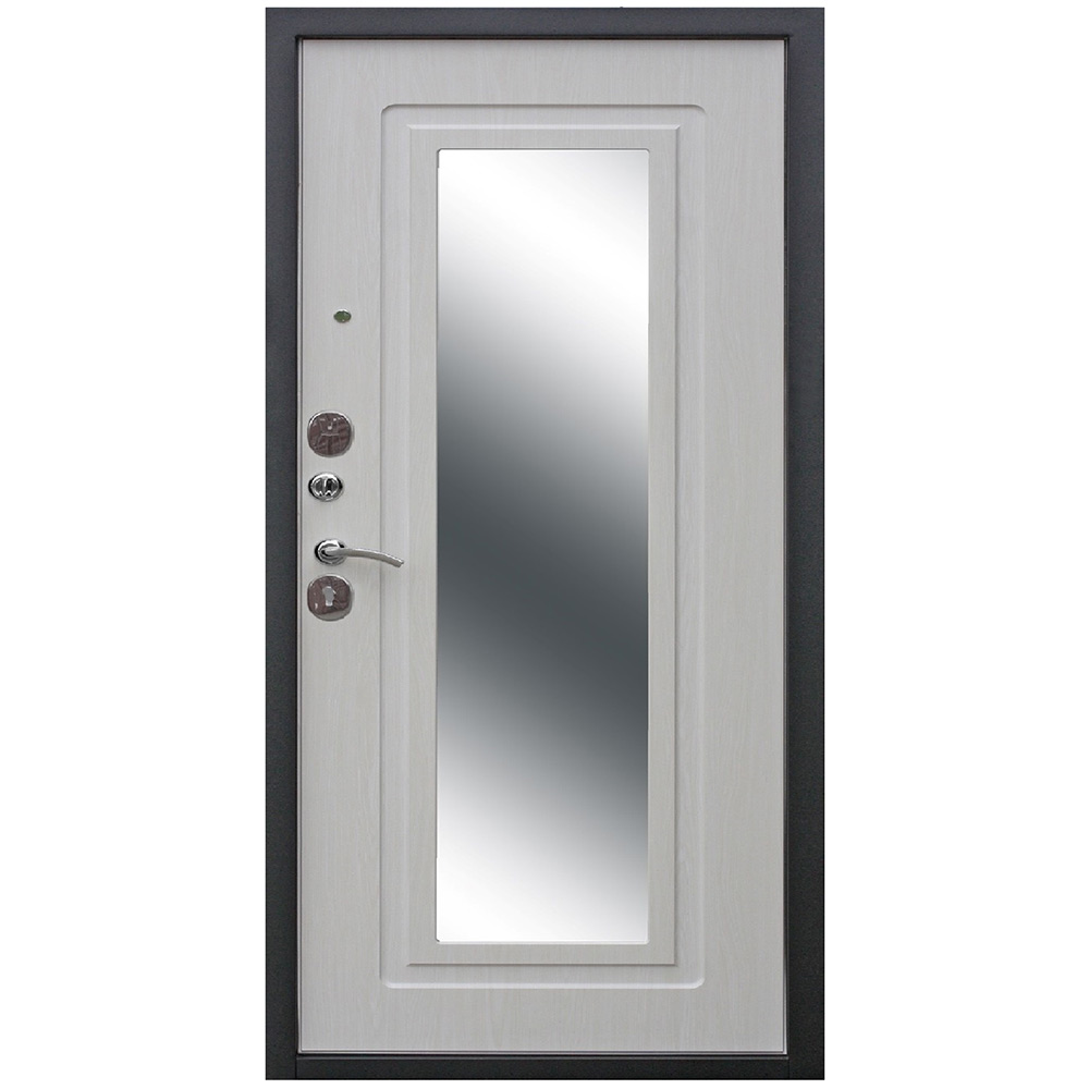 Дверь входная Ferroni Царское зеркало левая черный муар – белый ясень с зеркалом 960х2050 мм