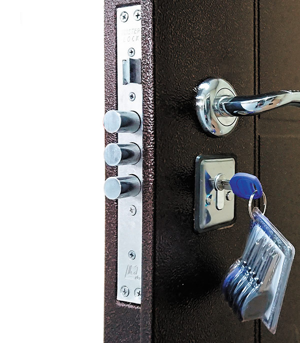 три ригеля, цилиндр с вертушкой и комплектом из 5 ключей.
