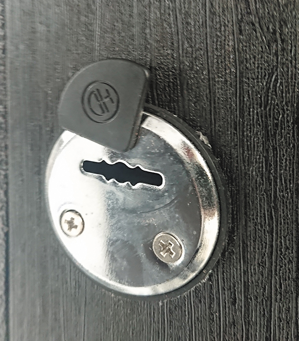 цилиндр с вертушкой и комплектом из 5 ключей (закреплен на раме двери).