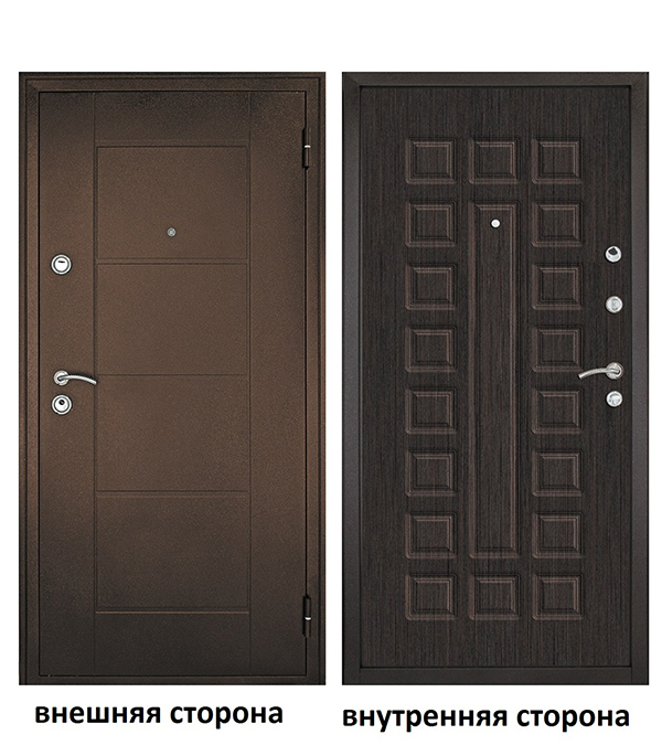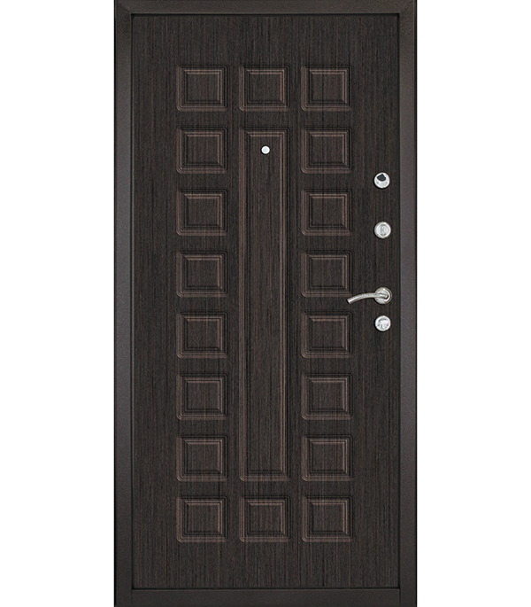 Предназначена для установки в жилых и общественных зданиях в качестве входной двери как внутри помещения, так и снаружи, при наличии неотапливаемого тамбура. С внутренней стороны дверь облицована МДФ-панелью цвета венге. В раме есть отверстия под ригельную группу, возможна доработка отверстий напильником после установки (не является производственным дефектом). Допускается установка на улице при наличии холодного тамбура и навеса не менее 80 смrnРучки цвет хром; rnНочная задвижка; rnДва контура уплотнения; rnВнутренний притвор; rnКомплект ручек со стяжными болтами (расположены в верхней части рамы двери); rnАнкерные болты в комплект поставки не входят и приобретаются отдельно.