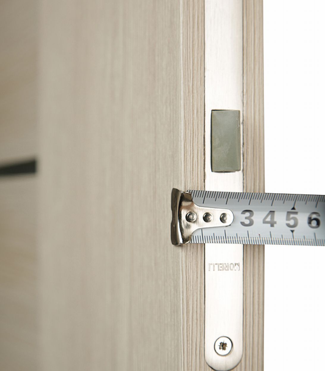 дверное полотно (без отверстий под ручку), замок Morelli 1870 SN с защелкой (матовый хром), комплект накладных петель (2 шт.), саморезы (18 шт.), ответная планка под замок Morelli.