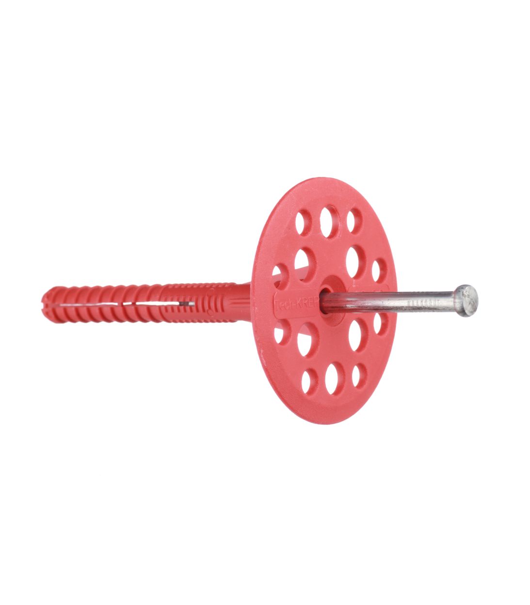 Пластмассовые стержни изготовлены из полиамида, модифицированного стекловолокном с высокой ударной вязкостью, или полипропилена. металлические стержни – стальные, с гальваническим цинковым покрытием, в ряде случаев – с характерным черепичным витком резьбы. rnПрименяются для механического крепления тяжелых теплоизоляционных плит из минеральной ваты и легких материалов типа пенополистирола к бетонным основаниям (бетон, кирпич, камень), пустотелым материалам (пустотелый блок, дырчатый кирпич).rnМонтаж соединителя производится механическим вбиванием стержня. Конструкция тарелкидюбеля позволяет легкое покрытие слоем штукатурки. Благодаря использованию материалов, стойких к атмосферным условиям, не возникает термических мостиков, что обеспечивает долгую сохранность фасада.