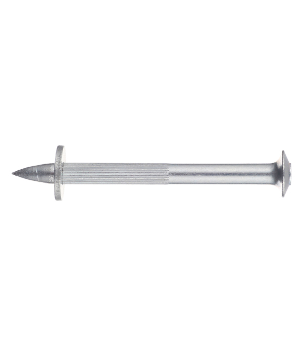 Предназначен для сквозного монтажа металлических и деревянных строительных конструкций к бетонным или кирпичным основаниям при помощи монтажного пистолета. Соединение получается неразборным. Категорически запрещается применять дюбель-гвозди для крепления механизмов и оборудования, подвергающихся вибрационным и (или) динамическим нагрузкам. Представляет собой металлический гвоздь, который имеет широкую шляпку и подвижную шайбу в районе острия. Шайба необходима для центровки и фиксации дюбель-гвоздя в монтажном пистолете перед выстрелом. Цинковое покрытие придает устойчивость к коррозии и защищает от появления подтеков ржавчины на лицевой части прикрепляемого материала.