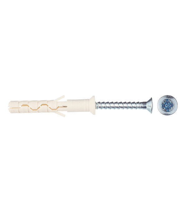 Предназначен для легких креплений (небольшие нагрузки) в твердые материалы: полнотелый кирпич, бетон, природный камень.rnНейлон обеспечивает надежное сцепление с материалом основания. Резьбовой оцинкованный гвоздь повышенной прочности заранее установлен в дюбель.