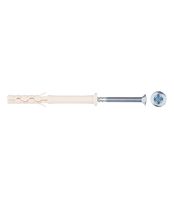 Предназначен для легких креплений (небольшие нагрузки) в твердые материалы: полнотелый кирпич, бетон, природный камень. rnНейлон обеспечивает надежное сцепление с материалом основания. Резьбовой оцинкованный гвоздь повышенной прочности заранее установлен в дюбель.
