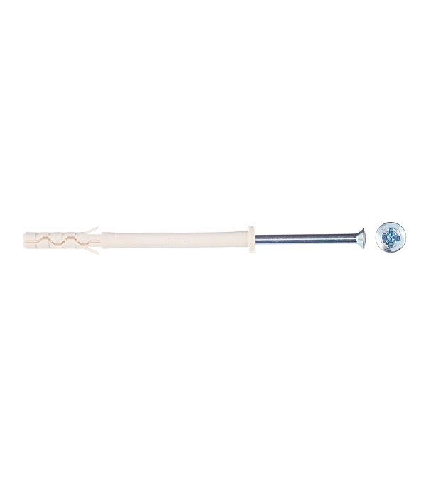 Предназначен для легких креплений (небольшие нагрузки) в твердые материалы: полнотелый кирпич, бетон, природный камень. rnНейлон обеспечивает надежное сцепление с материалом основания. Резьбовой оцинкованный гвоздь повышенной прочности заранее установлен в дюбель.