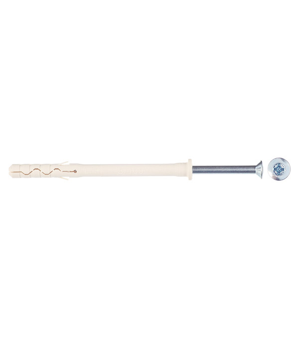 Предназначен для легких креплений (небольшие нагрузки) в твердые материалы: полнотелый кирпич, бетон, природный камень. rnНейлон обеспечивает надежное сцепление с материалом основания. Резьбовой оцинкованный гвоздь повышенной прочности заранее установлен в дюбель.