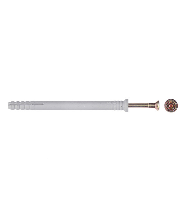 Предназначен для крепления в бетон, керамический полнотелый кирпич, ячеистый бетон, клинкерный кирпич и натуральный камень. Поставляется в комплекте со стальным гвоздеобразным шурупом (крестообразным шлицом), шлиц которого позволяет демонтировать закрепляемую деталь без нарушения внешнего вида крепления.