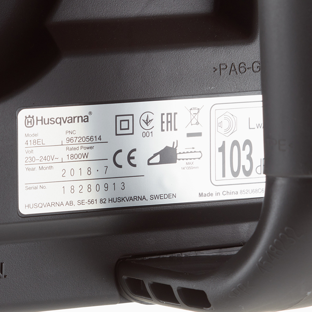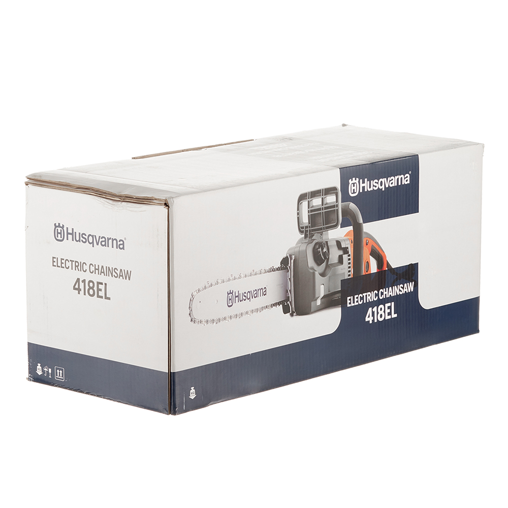 Цепной тормоз двойного действия, щиток для защиты правой руки и ограничитель цепи повышают безопасность использования пилы 418 EL.
