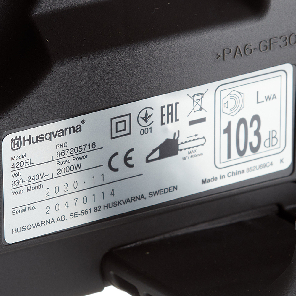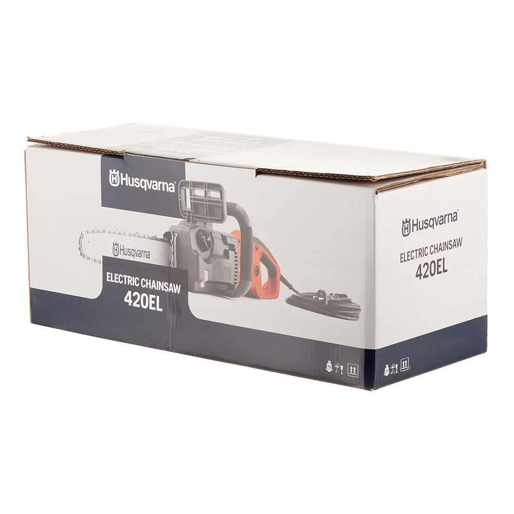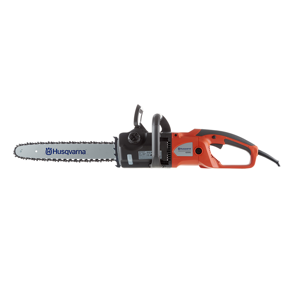 Цепной тормоз двойного действия, щиток для защиты правой руки и ограничитель цепи повышают безопасность использования пилы 420 EL.