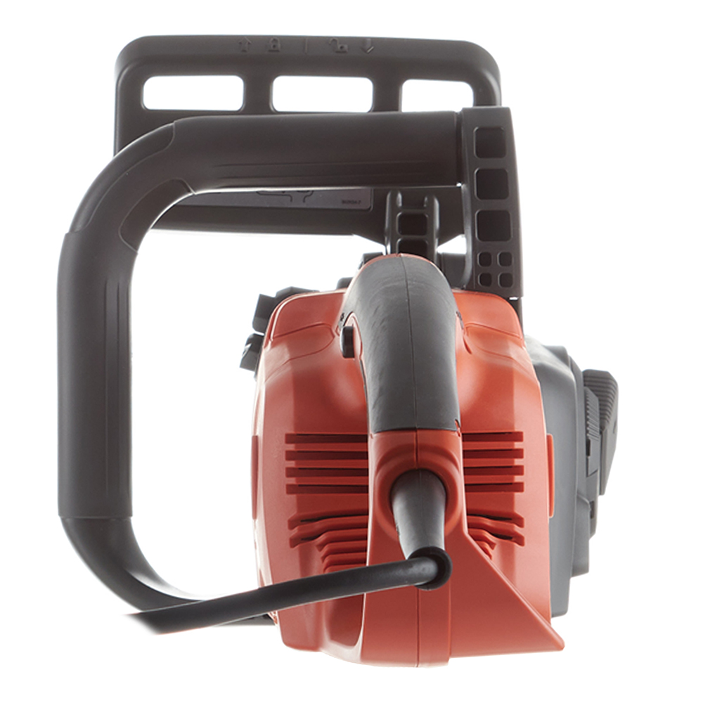 Мощная цепная пила с приводом от электрической сети и потребляемой мощностью 2 кВт и пильной шиной, длиной 16”/40см. Предназначена для пиления древесины некоммерческого использования. Создаваемые характеристики, реализуемый мгновенно после включения крутящий момент, обеспечивают высокую скорость и производительность пиления, а компактный корпус, практичный дизайн, мягкая передняя рукоятка, расположенная под углом 90 градусов и натяжение цепи без какого-либо инструмента – манёвренность и эргономичность конструкции. Идеальный инструмент для частных пользователей, умельцев и работы внутри помещения.