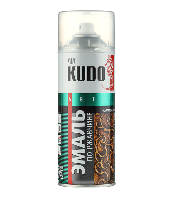 Эмаль аэрозольная по ржавчине Kudo молотковая серебристо-черная полуглянцевая KU-3013 520 мл