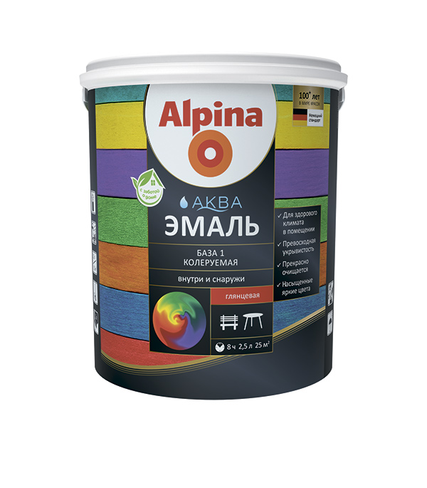 Эмаль акриловая Alpina Аква Эмаль глянцевая база 1/2,5 л