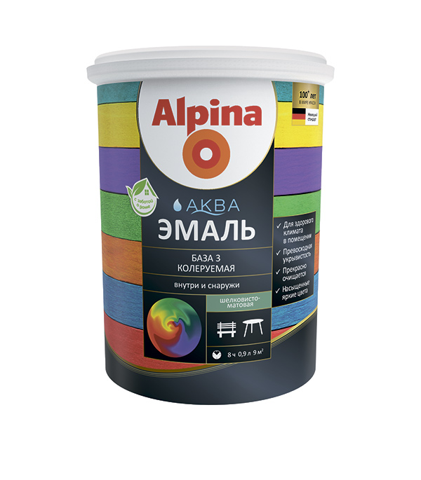Эмаль акриловая Alpina Аква Эмаль шелковисто-матовая база 3/0,9 л