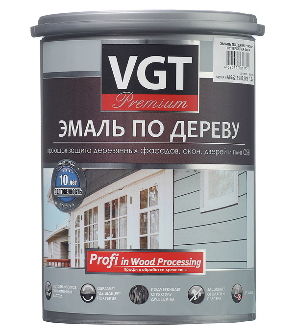Эмаль акриловая по дереву VGT Профи белая основа А 1 кг