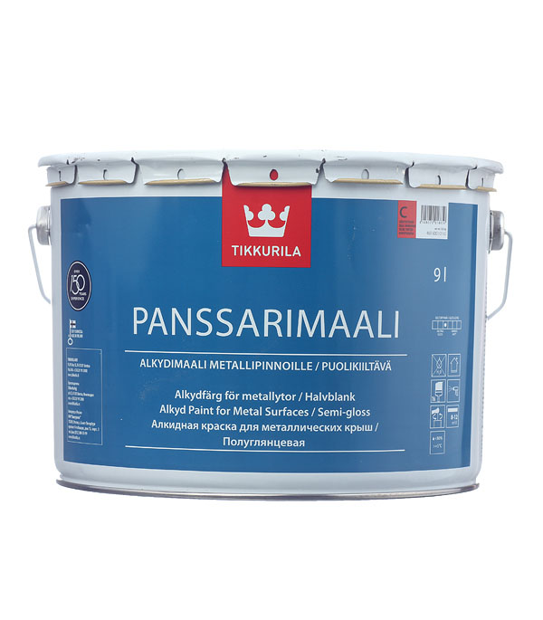 Эмаль для металлических крыш Tikkurila Panssarimaali основа C полуглянцевая 9 л