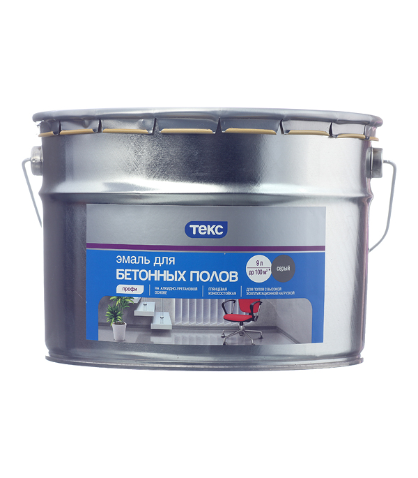 Эмаль Текс Профи для бетонных полов серая глянцевая 9 л