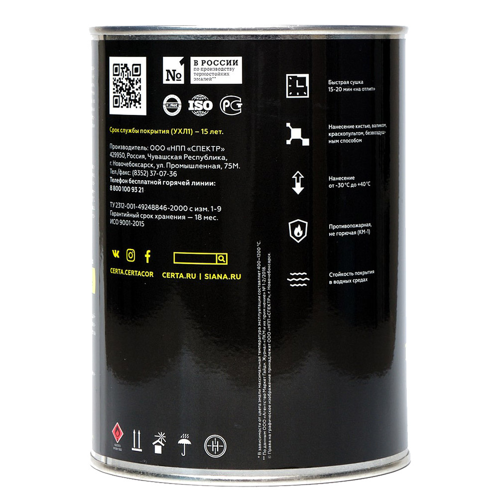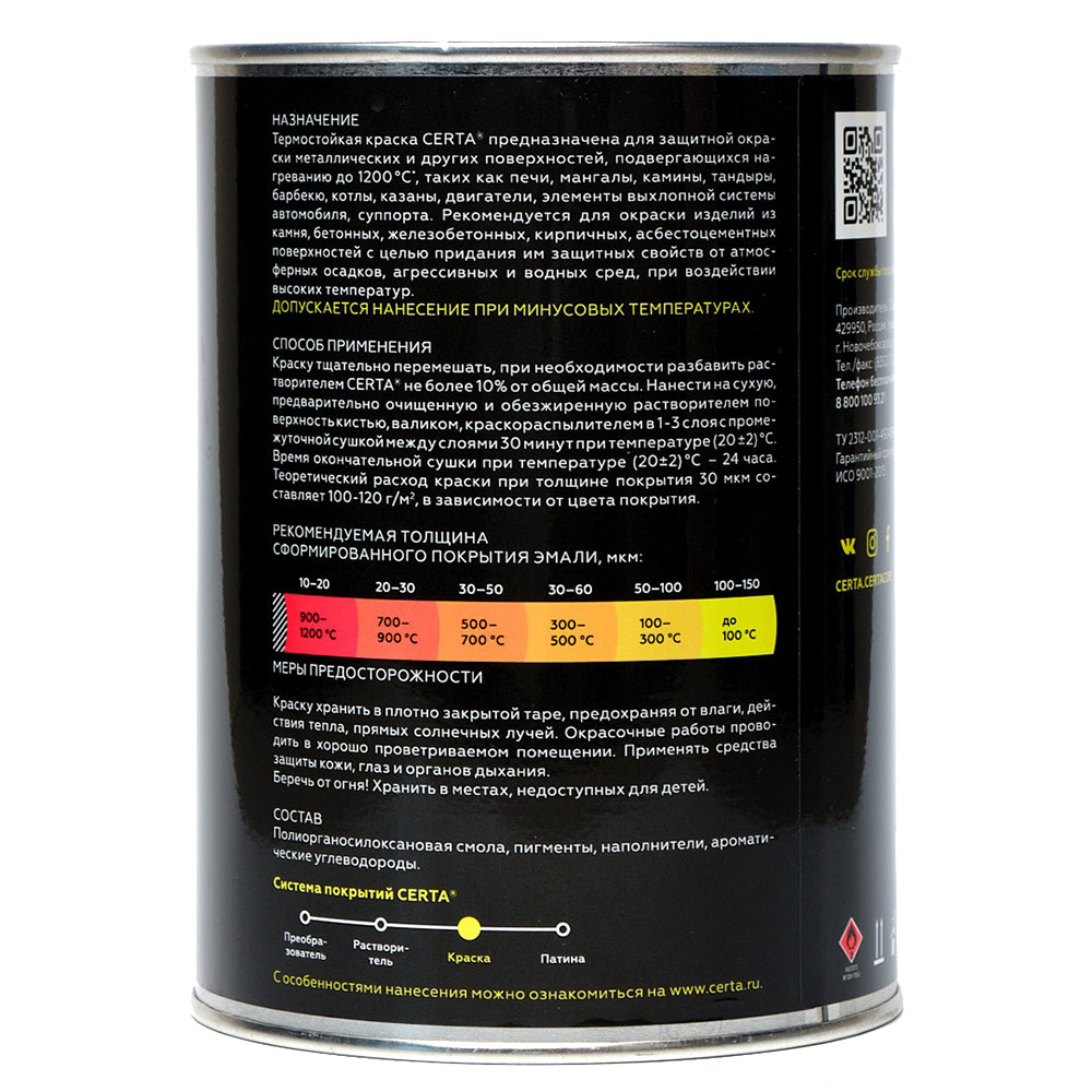 Эмаль термостойкая CERTA черный 1200°С 0,8 кг