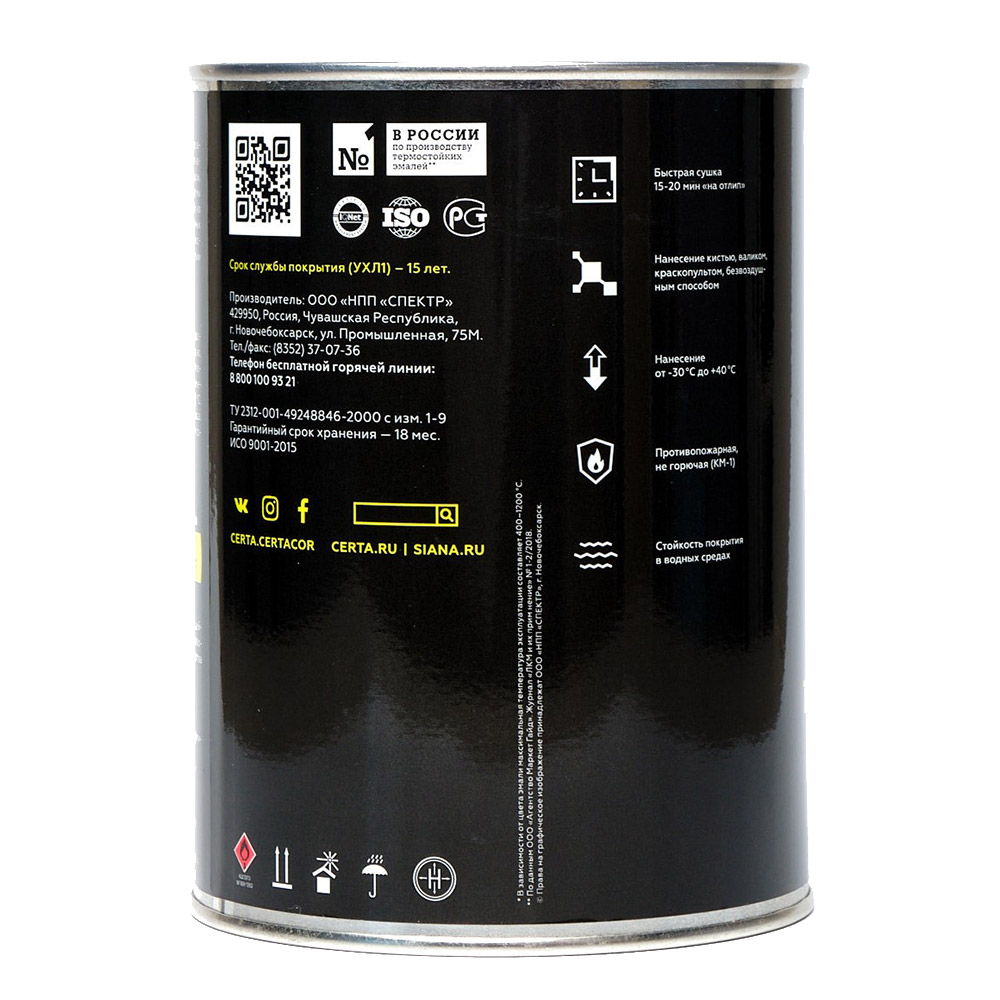 Эмаль термостойкая CERTA черный 700°С 0,8 кг