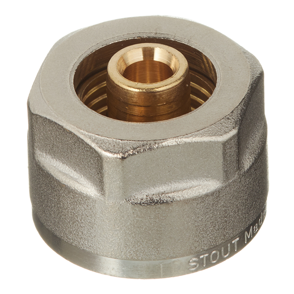 Фитинги компрессионные Stout типа «Евроконус» предназначены для присоединения труб Stout к штуцерам оборудования с наружной резьбой 3/4 дюйма и соответствующей геометрией, например коллекторов распределительных блоков Stout.