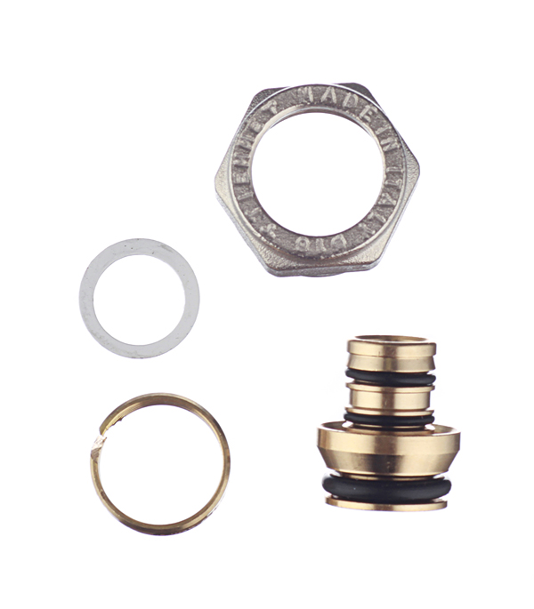 Предназначен для создания разъемного соединения металлопластиковой трубы 16х2 мм с различной запорно-распределительной арматурой (коллекторы, коллекторные группы, узлы нижнего подключения и пр.), имеющей посадочное место «под евроконус». Состоит из штуцера с конусовидным посадочным местом (так называемый «евроконус»), разрезного кольца и гайки с внутренней резьбой 1/2(16 мм).