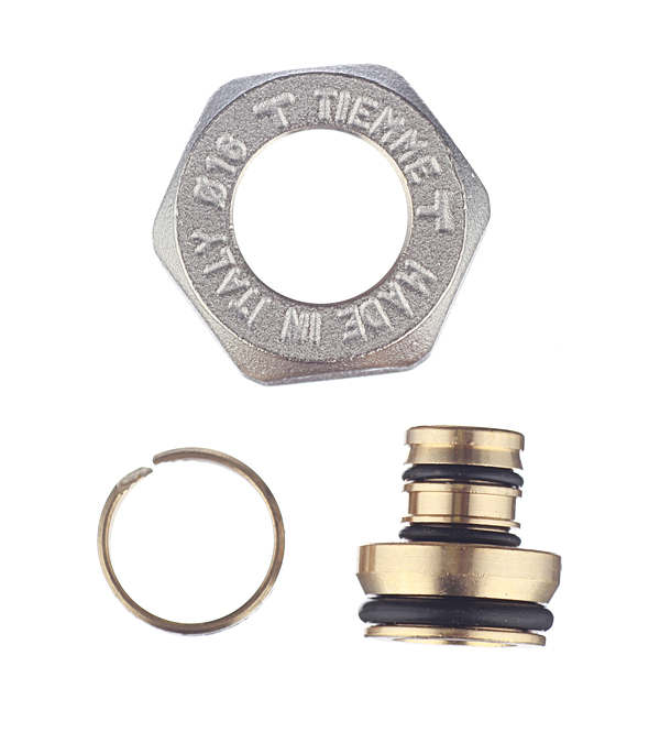 Предназначен для создания разъемного соединения металлопластиковой трубы 16х2 мм с различной запорно-распределительной арматурой (коллекторы, коллекторные группы, узлы нижнего подключения и пр.), имеющей посадочное место «под евроконус». Состоит из штуцера с конусовидным посадочным местом (так называемый «евроконус»), разрезного кольца и гайки с внутренней резьбой 3/4(20 мм).