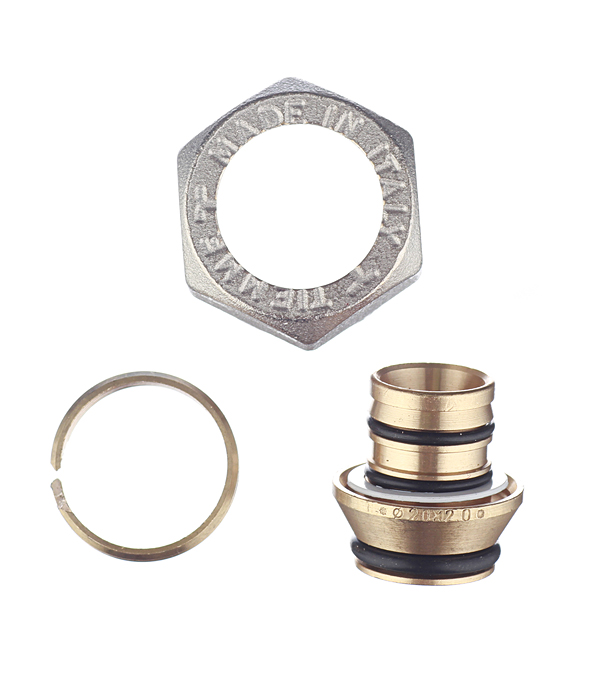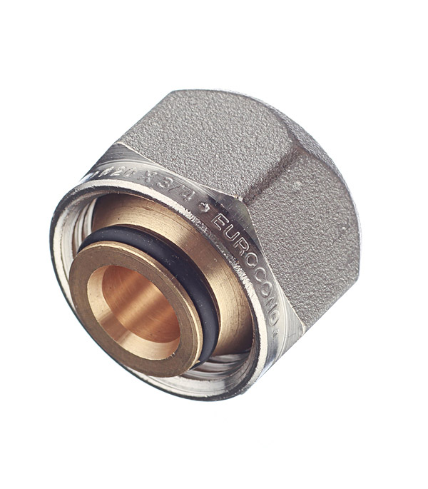 Предназначен для создания разъемного соединения металлопластиковой трубы 20х2 мм с различной запорно-распределительной арматурой (коллекторы, коллекторные группы, узлы нижнего подключения и пр.), имеющей посадочное место «под евроконус». Состоит из штуцера с конусовидным посадочным местом (так называемый «евроконус»), разрезного кольца и гайки с внутренней резьбой 3/4(20 мм).