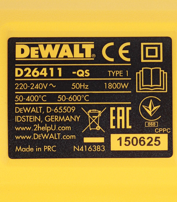 Фен строительный электрический DeWalt D26411 1800 Вт