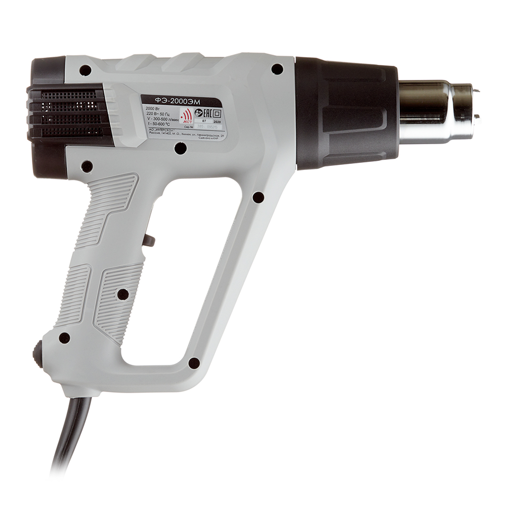 ФЭ-2000ЭМ – модель термопистолета, 2000 Вт – мощность.