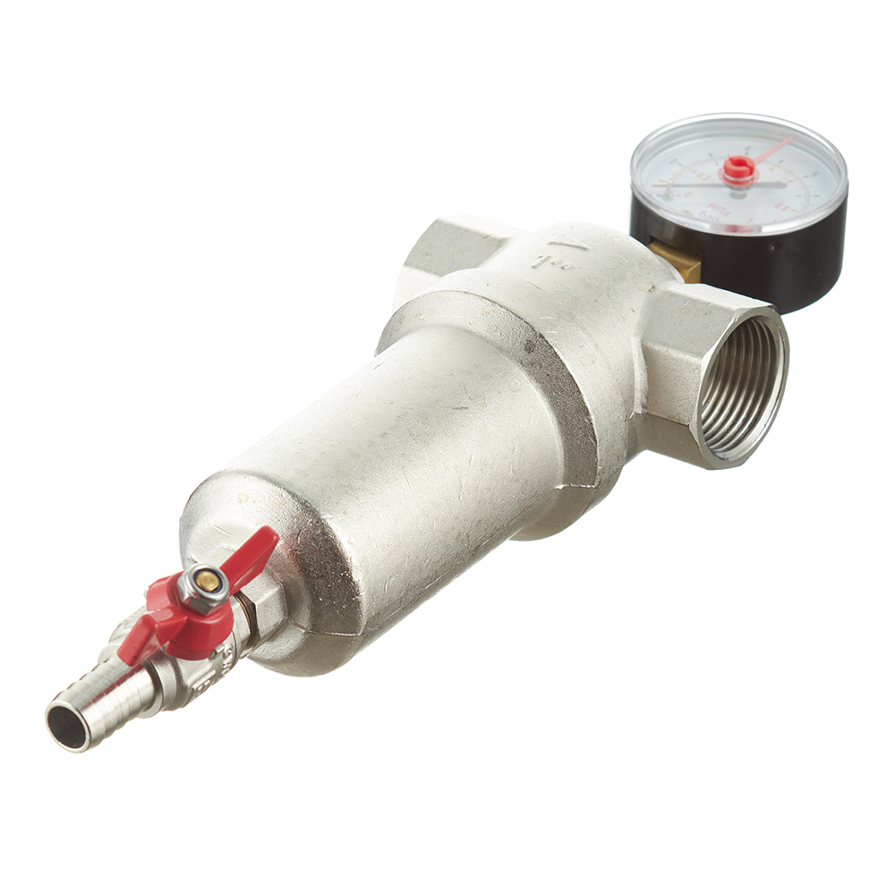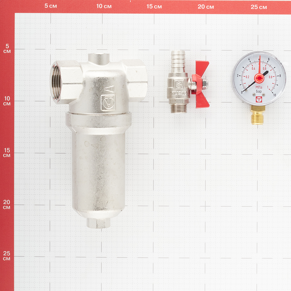 Предназначен для очистки воды с возможностью удаления накопившихся загрязнений без извлечения сетчатых вставок (промывной фильтр).rnОснащен двумя (один в другом) фильтроэлементами из нержавеющей стали.rnПредусмотрены дренажный шаровой кран со штуцером для подключения шланга и манометр для контроля уровня загрязненности сеток.rnФильтр монтируется в вертикальном положении.