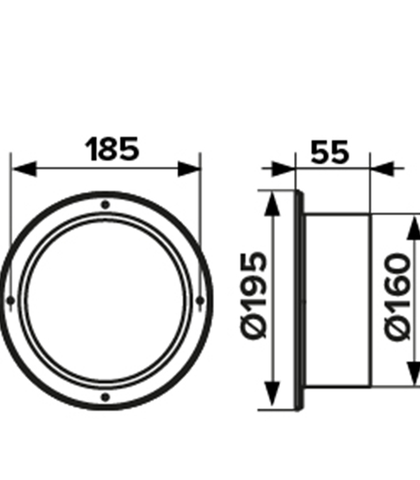 Предназначен для конечного монтажа воздуховодов круглых диаметром 160 мм к стене с вентиляционным отверстием.