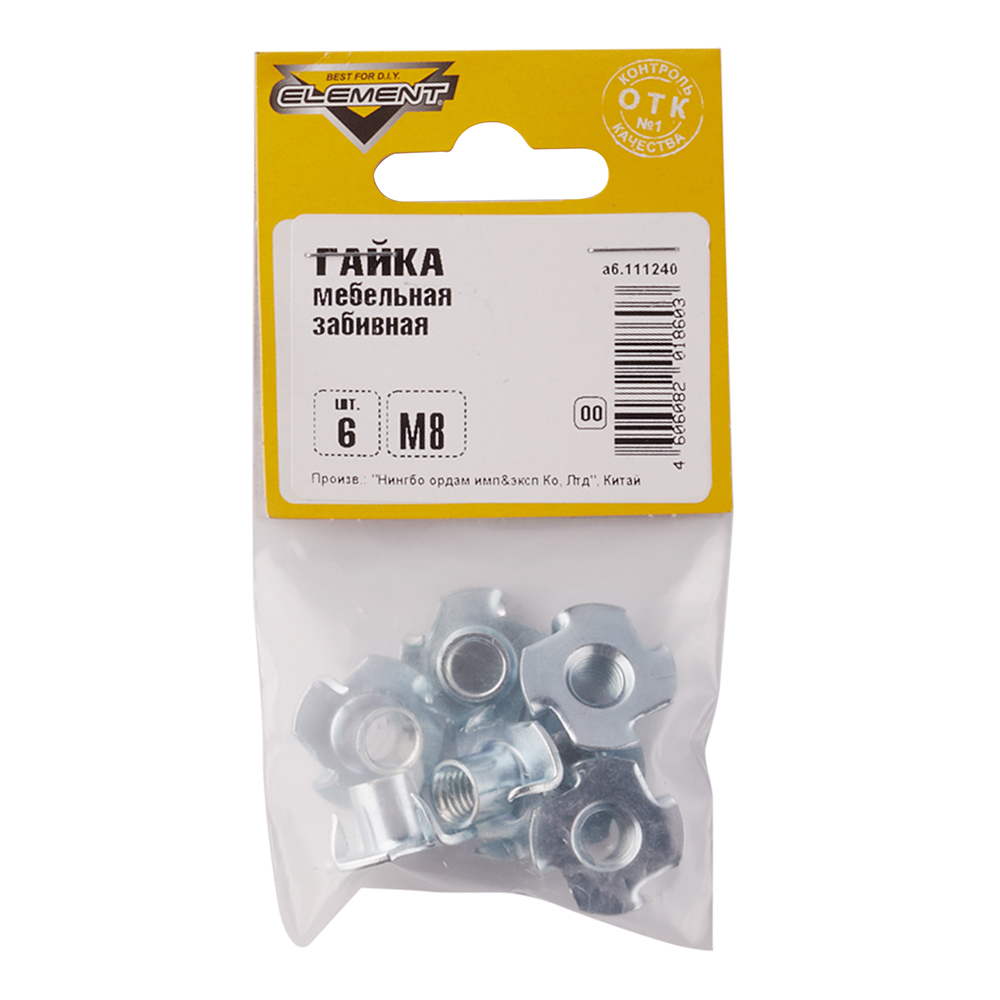 Гайка мебельная забивная оцинкованная M8 (6 шт.)