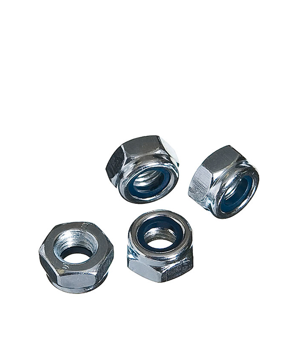 Предназначены для создания разъемного соединения деталей и конструкций в сочетании с болтами соответствующего диаметра. Имеют шестигранную форму (под гаечный ключ) с отверстием, в котором нарезана резьба. Нейлоновая вставка в гайке предотвращает самопроизвольное откручивание и обеспечивает герметичность резьбы. Цинковое покрытие защищает от коррозии.