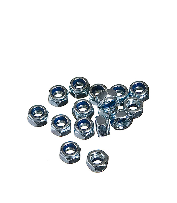 Предназначены для создания разъемного соединения деталей и конструкций в сочетании с болтами соответствующего диаметра. Имеют шестигранную форму (под гаечный ключ) с отверстием, в котором нарезана резьба. Нейлоновая вставка в гайке предотвращает самопроизвольное откручивание и обеспечивает герметичность резьбы. Цинковое покрытие защищает от коррозии.