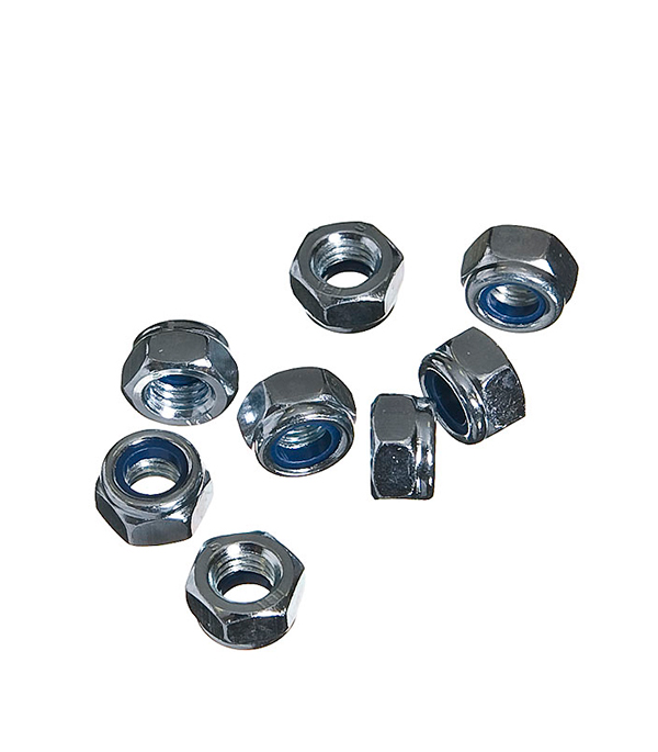 Предназначены для создания разъемного соединения деталей и конструкций в сочетании с болтами соответствующего диаметра. Имеют шестигранную форму (под гаечный ключ) с отверстием, в котором нарезана резьба. Нейлоновая вставка в гайке предотвращает самопроизвольное откручивание и обеспечивает герметичность резьбы. Цинковое покрытие защищает от коррозии.