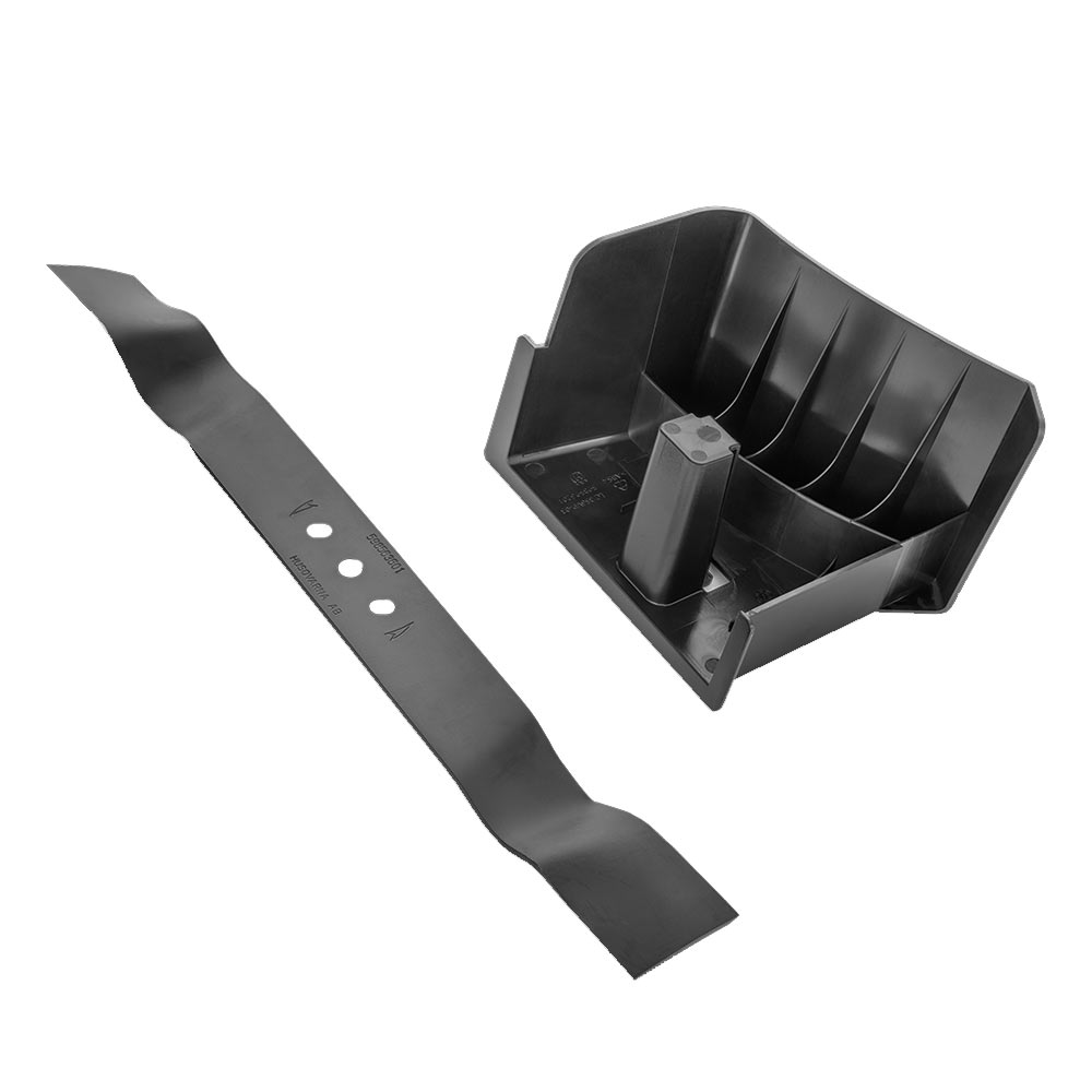 - Быстрая и легкая регулировка высоты стрижки травы. Один рычаг обеспечивает изменение положения всей деки.