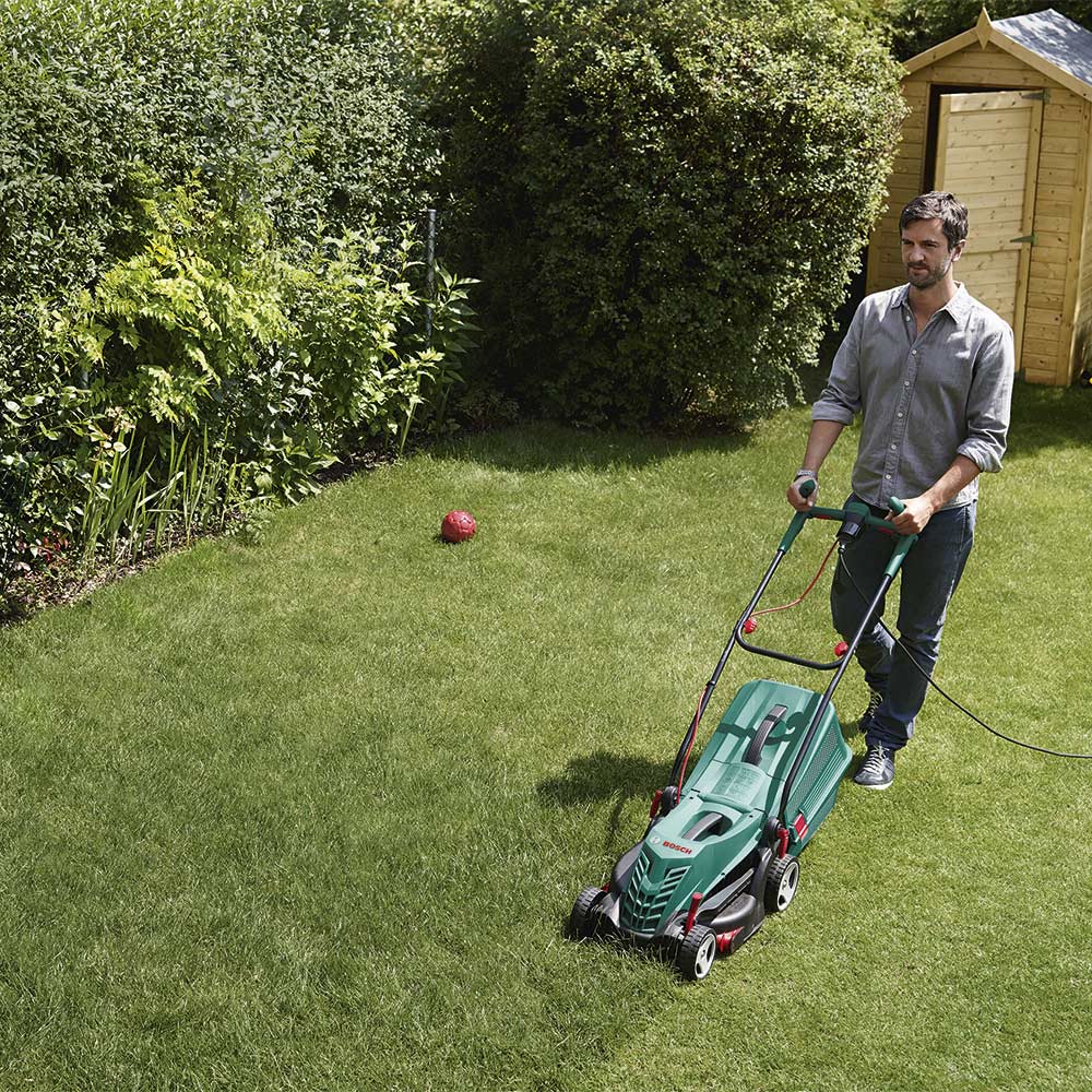 Газонокосилка Bosch ARM 37 помогает избежать трудностей во время скашивания газона. Легкая, компактная и эргономичная, она легко маневрирует близко к краям и огибает препятствия.rnДвигатель «Powerdrive» легко скашивает высокую или густую траву, в то время как инновационные направляющие обеспечивают аккуратный и опрятный газон.rnРучки Ergoflex уменьшат нагрузку на плечи и спину при длительном кошении.rnСкладной 40-литровый травосборник обеспечивает большую вместительность и уменьшает частоту опустошений – так вы сделаете работу быстрее. А когда вы закончите, просто разместите травосборник на верхней части косилки, сложите рукоятки и храните в этом удобном и компактном виде до следующего кошения.